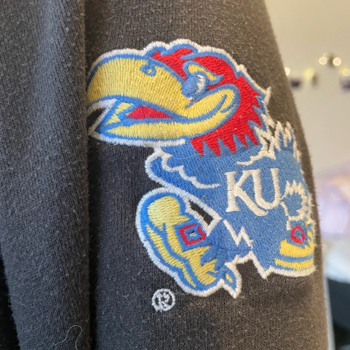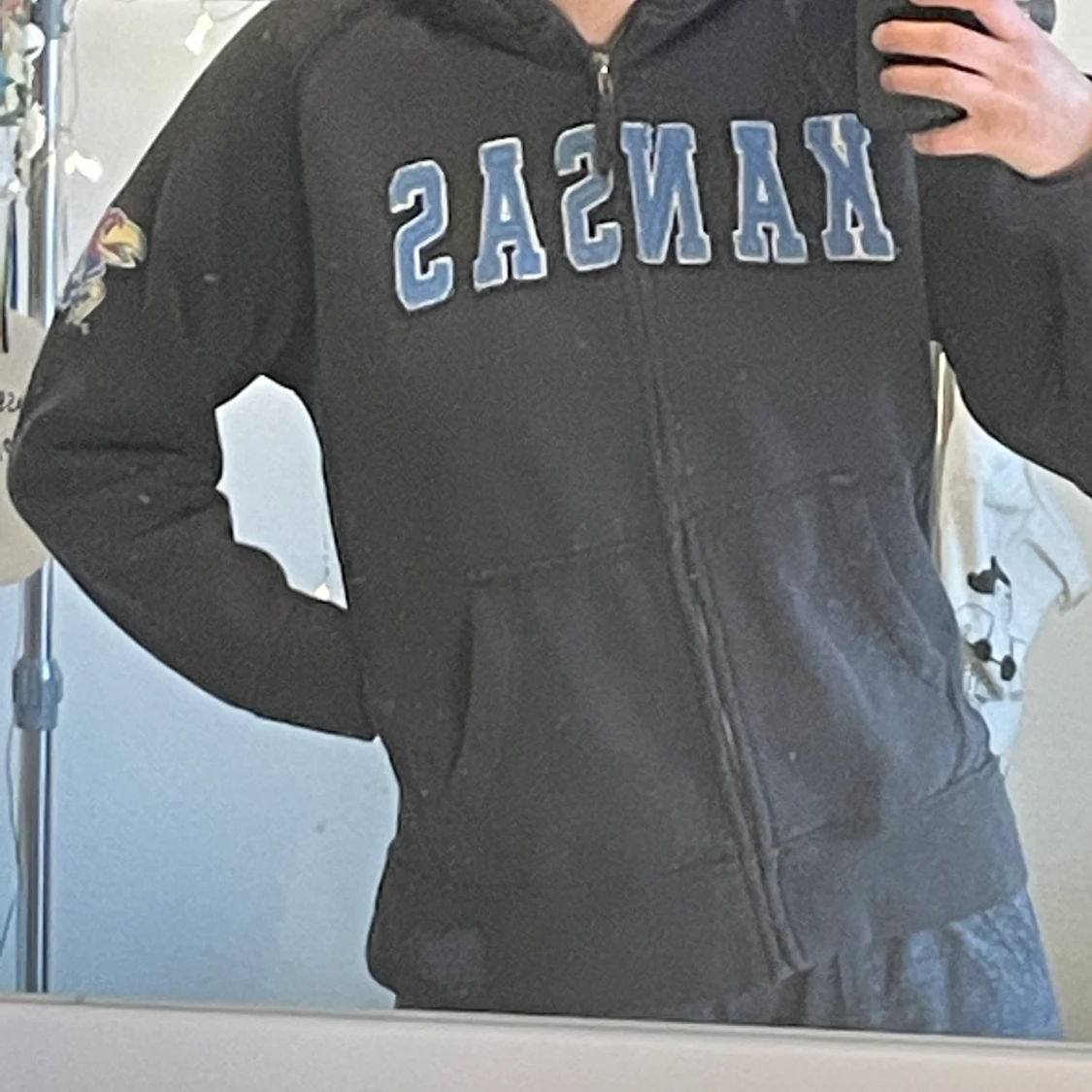 Hoodie från Kansas Univerisity, stor i storleken men fint oversize på mig med S Använd men bra skick 30 + frakt