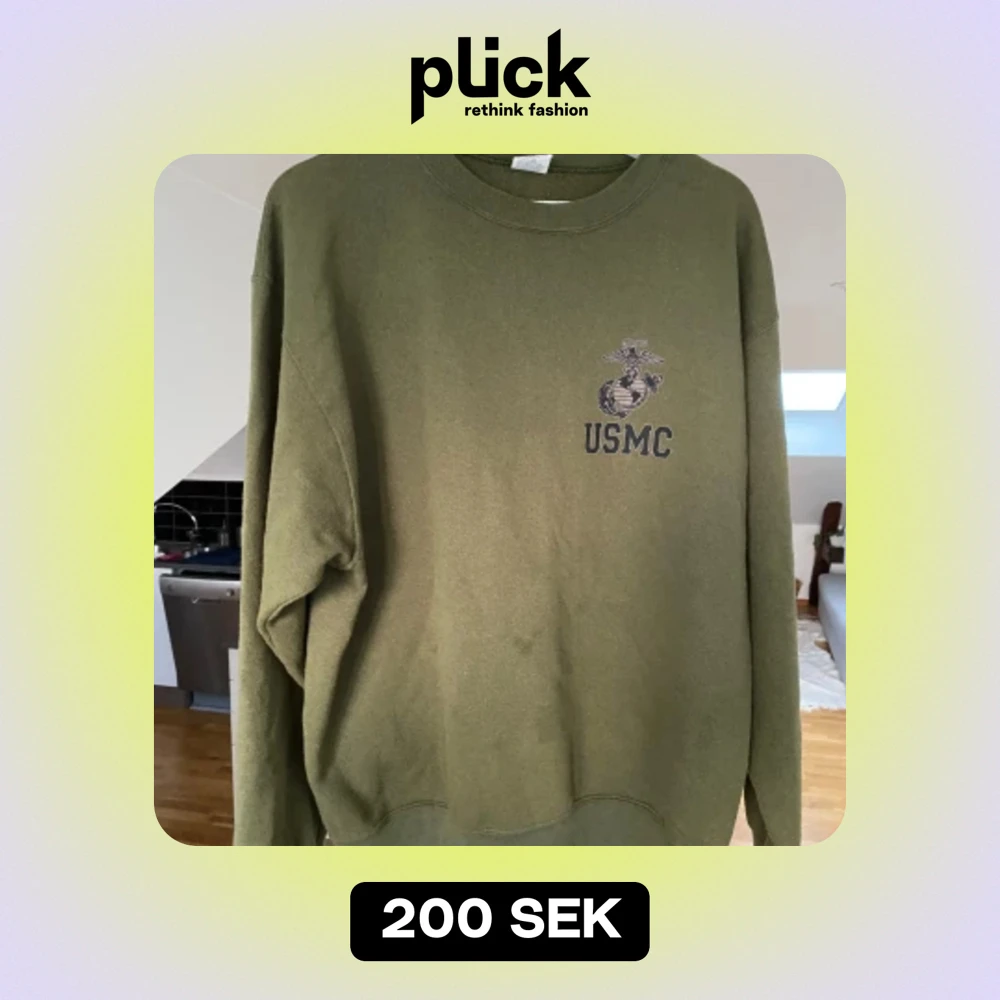 Säljer denna gröna US Navy sweatshirt som från början är köpt på Broadway & Sons. Den är i bra skick och kvalité och är använd. Den sitter som en storlek medium