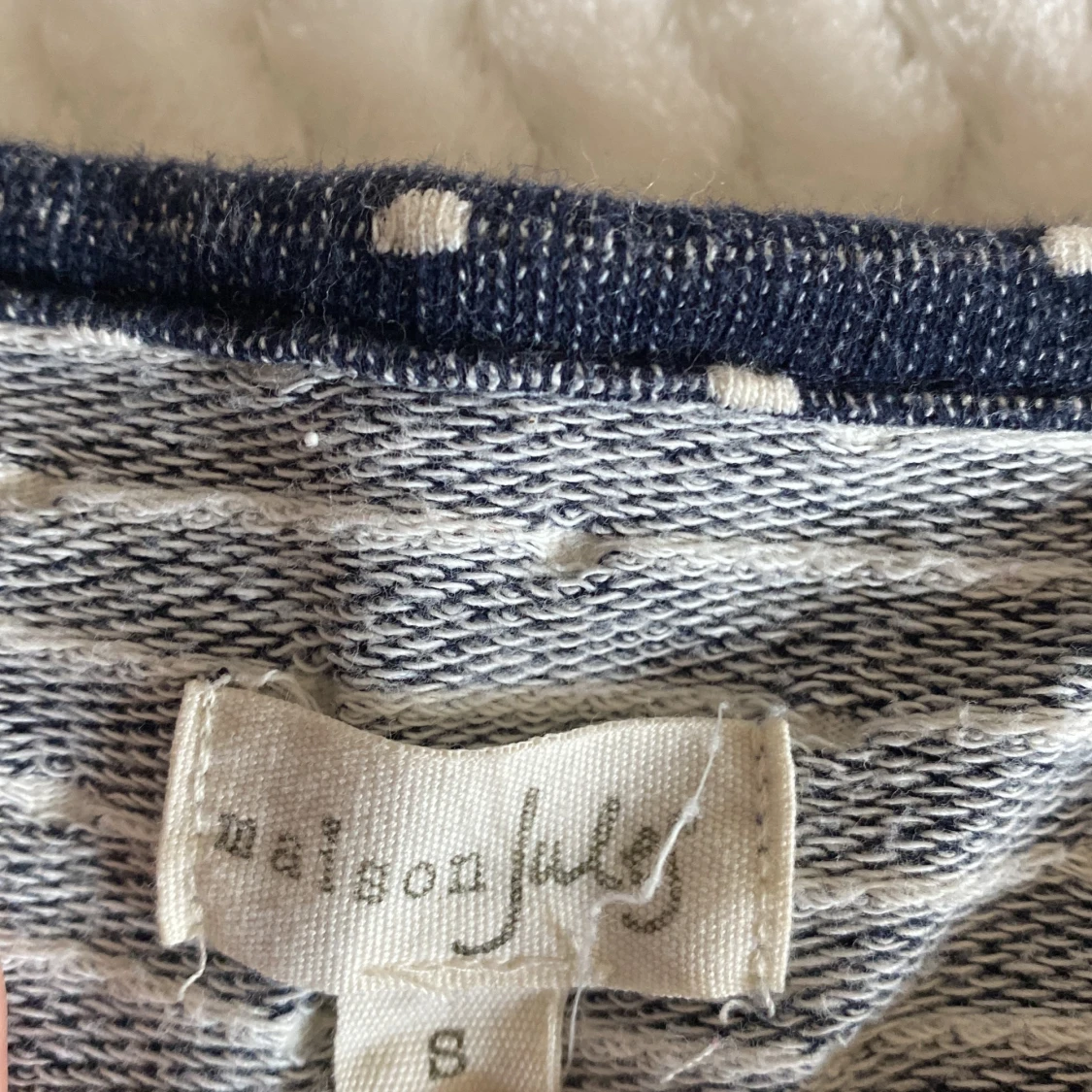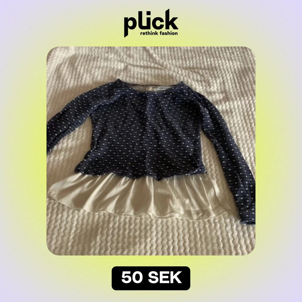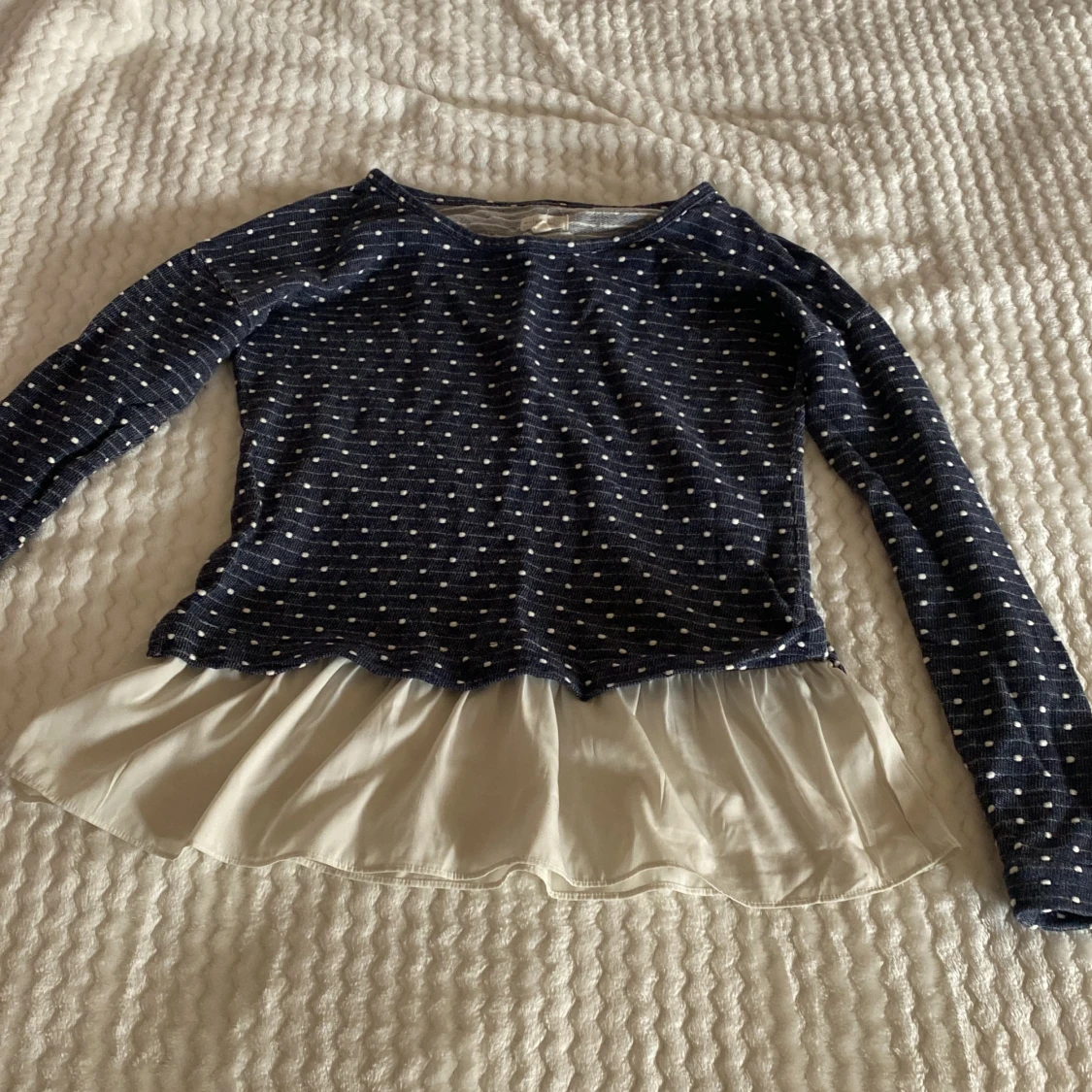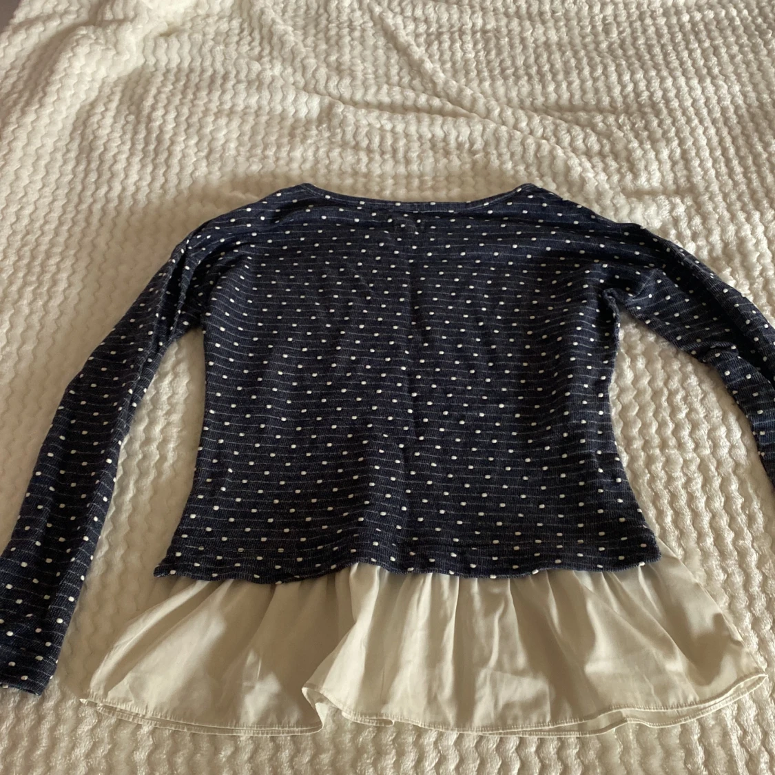 Långärmad prickig tröja med inbyggd vit utsväng