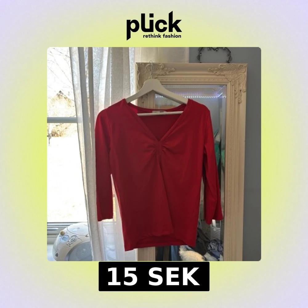 Säljer en snygg röd topp från A feeling of Joy. Den har en v-ringad design med en liten rynkdetalj framtill. Perfekt för att lägga till en färgklick i garderoben❣️ Storlek M!!!❣️
