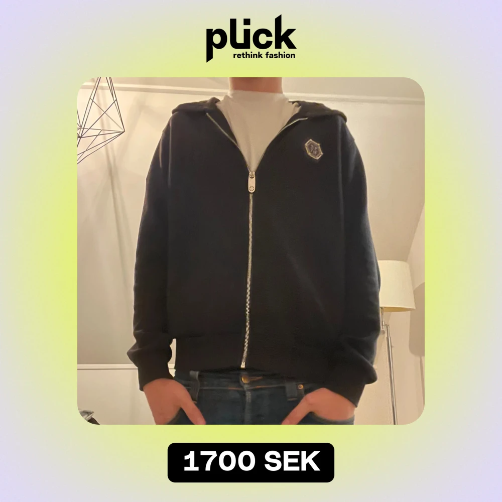 Säljer en svart Philipp plein hoodie i bra skick. Använder den inte så mycket längre därför säljer jag, jag är 185 och den sitter bra. Givetvis äkta! Priset är ej hugget i sten vid snabb affär!
