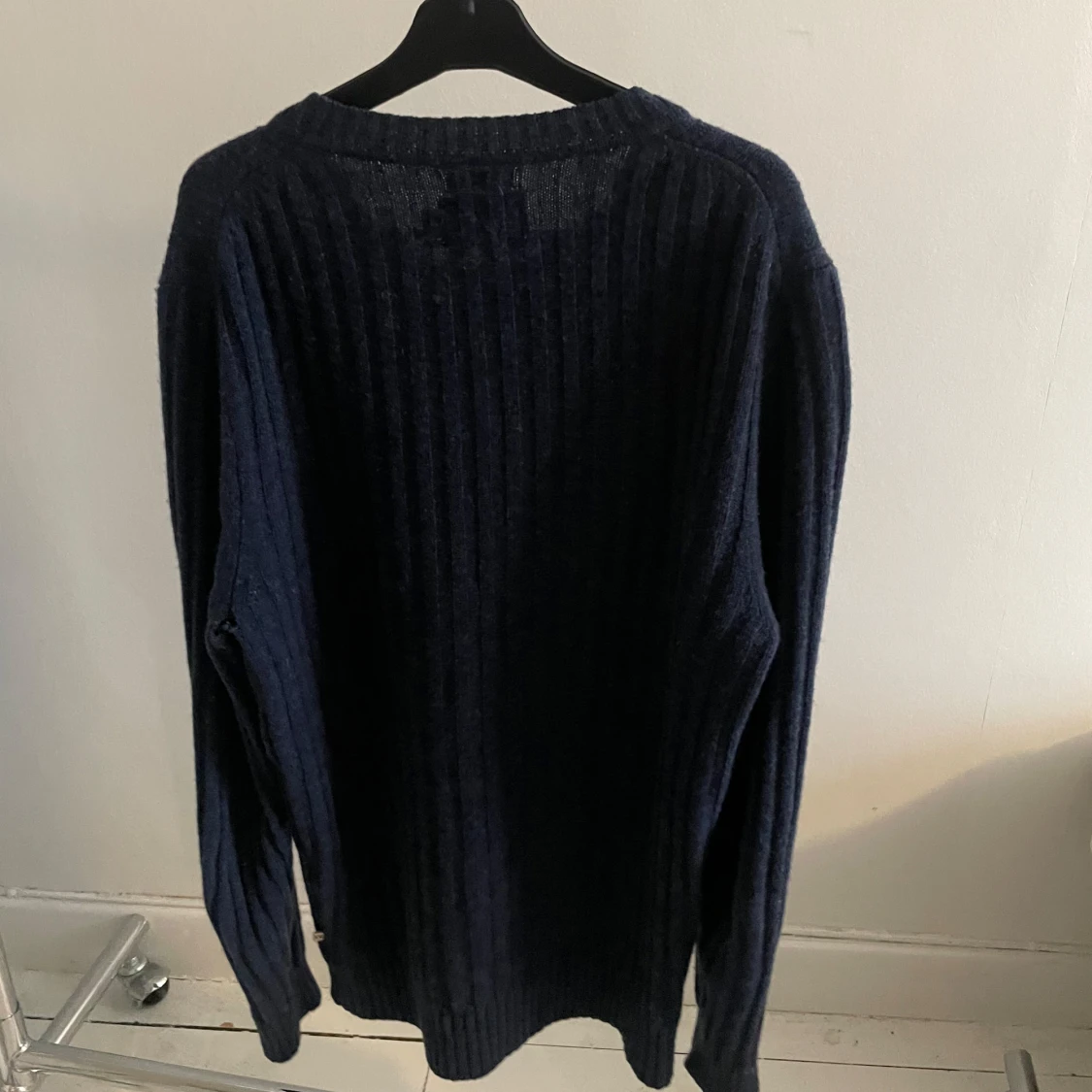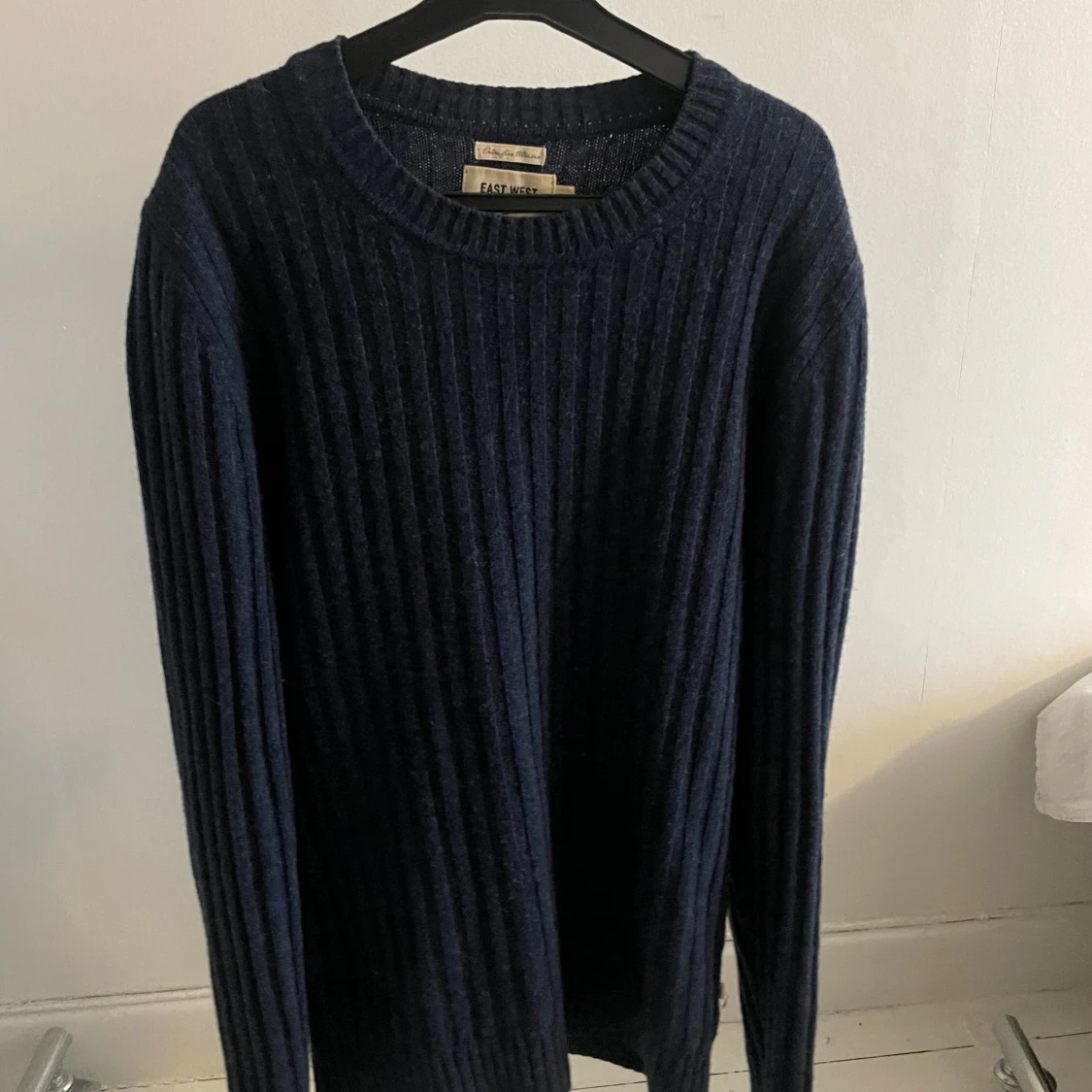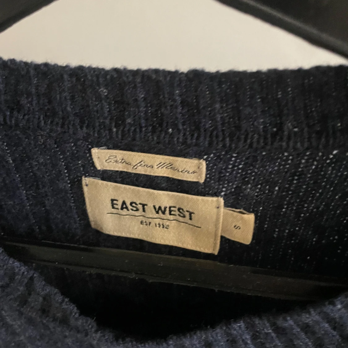 Säljer en stilren mörkblå ribbad tröja från East West. Tröjan har en klassisk rund hals och långa ärmar, perfekt för kyligare dagar. Den är både bekväm och snygg, ett måste i garderoben!