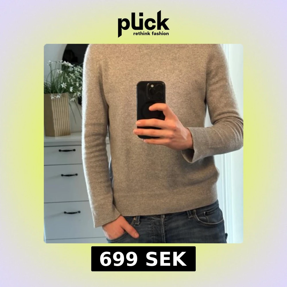 Säljer en stilren och mjuk grå tröja i 100% kashmir. Perfekt för kyliga dagar med sin långärmade design och klassiska look. Passar både till jeans och mer uppklädda tillfällen.