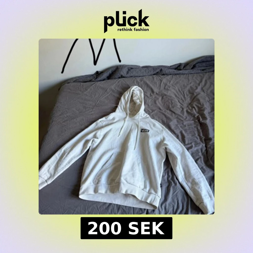 Säljer en vit hoodie från Vans i relaxed fit. Tröjan har huva med dragsko, magficka och en liten Vans-logga på bröstet. Perfekt för en avslappnad stil.