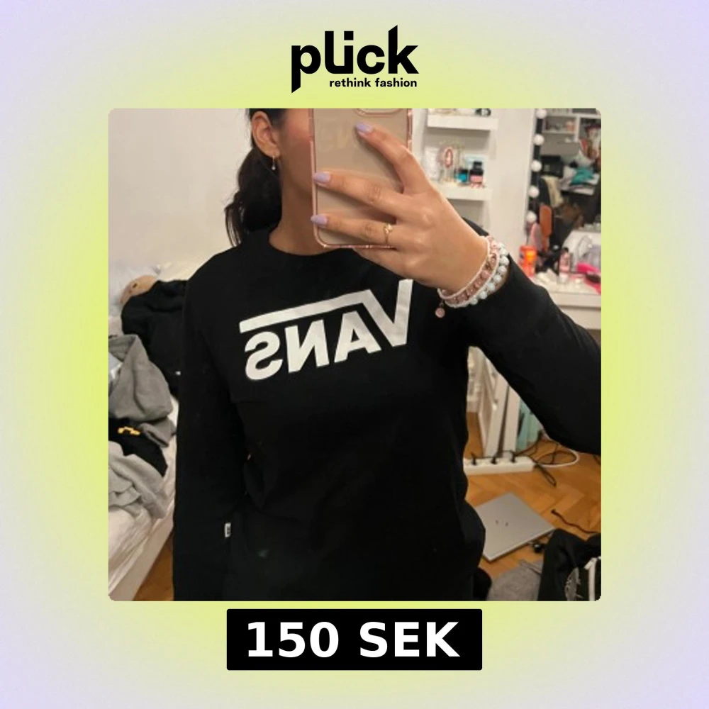 Säljer en svart långärmad tröja från Vans med deras ikoniska logga i vitt på bröstet. Perfekt för en casual look. Tröjan är i storlek XS och har en klassisk passform. Har även en i vit ute!