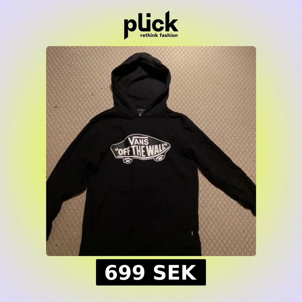 Säljer en svart hoodie från Vans med det klassiska 'Off The Wall' trycket på framsidan. Tröjan har en stor huva och långa ärmar, perfekt för en avslappnad stil och dem som gillar skate förstås. Säljer den då den är för liten, pris kan diskuteras.