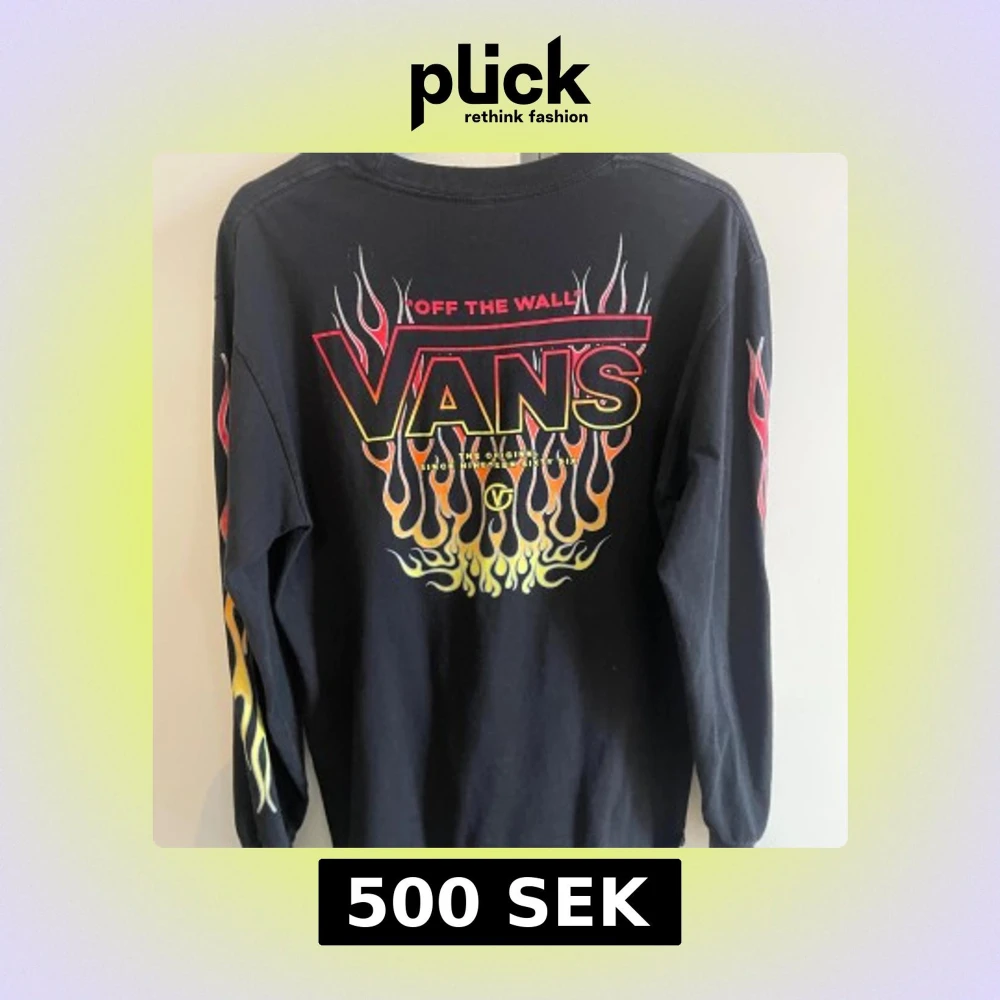 Cool svart långärmad tröja från Vans med stora flames i rött, gult och orange på ryggen och ärmarna. Stor Vans-logga på ryggen och mindre logga fram. Tillverkad i 100% bomull och har en klassisk passform.
