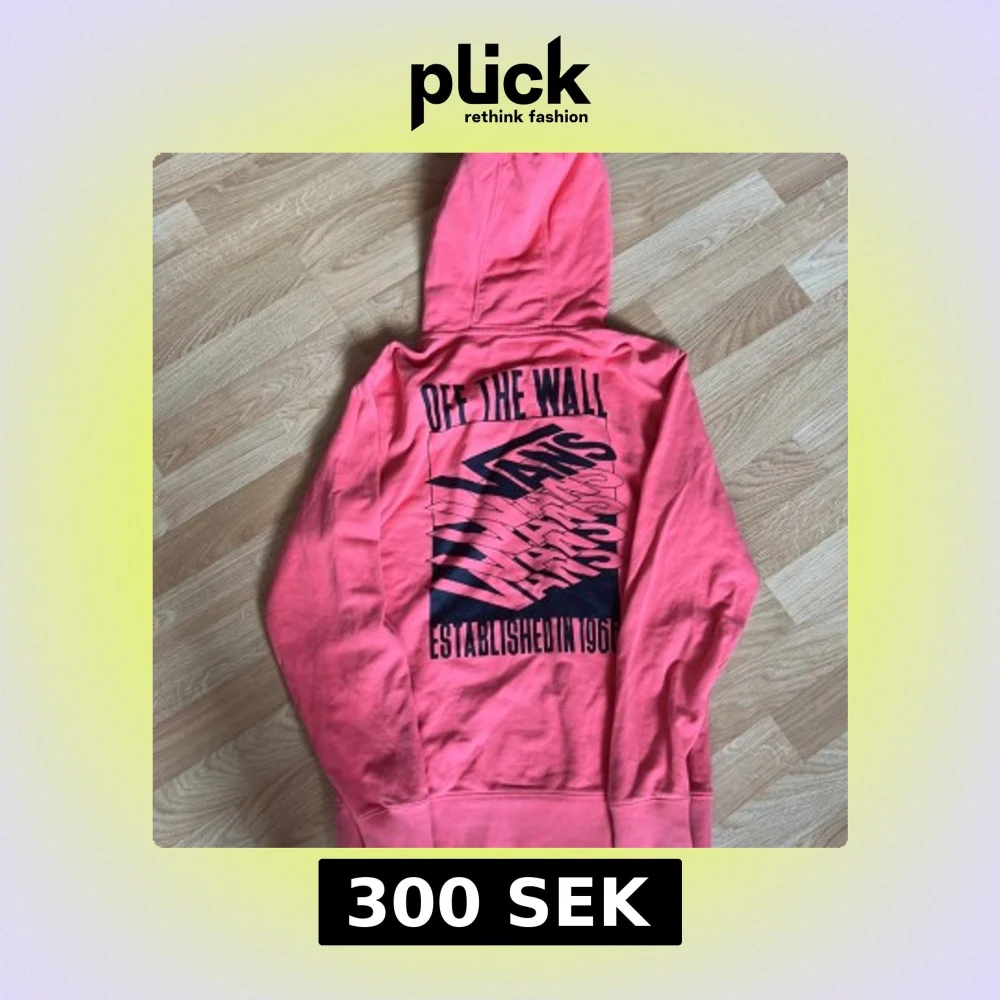Säljer en snygg rosa hoodie från Vans med stort grafiskt tryck och texten 'Off The Wall' på ryggen. Tröjan har huva med snörning, lång ärm och en klassisk känguruficka framtill. Perfekt för dig som gillar streetwear och vill sticka ut.