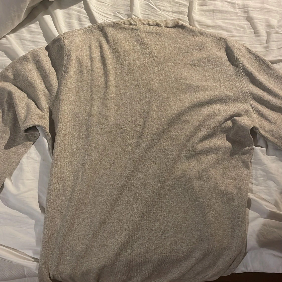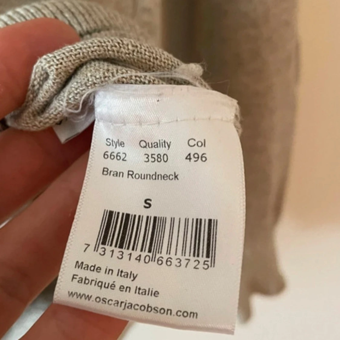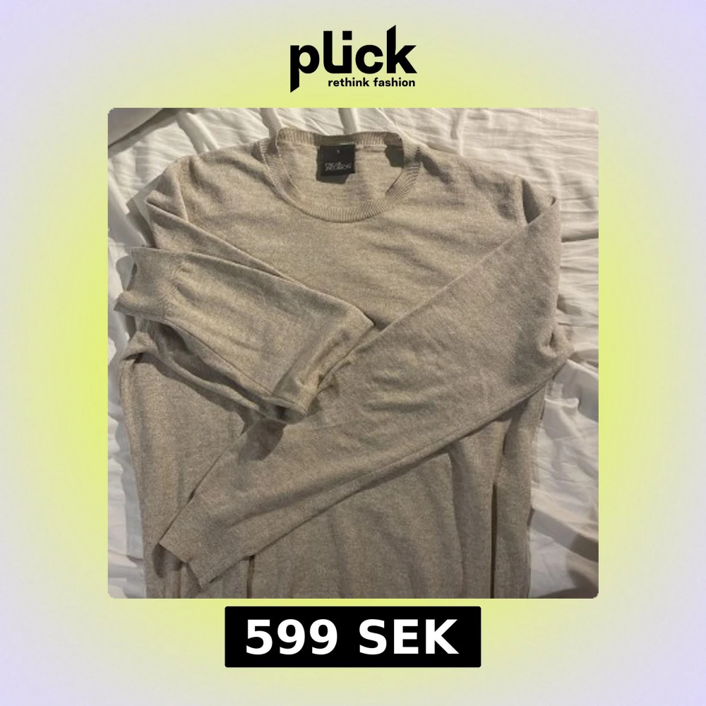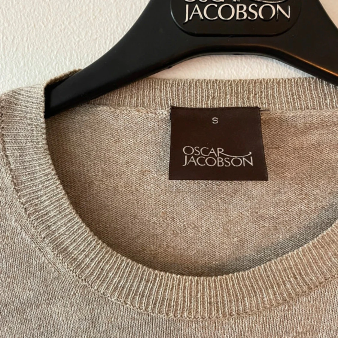 Säljer en stilren beige tröja från Oscar Jacobson. Tröjan är tunnstickad och har långa ärmar och ribbade muddar vid hals, ärmslut och nederkant. Perfekt med en fet tröja nu till våren. Skriv vid minsta funderingar!