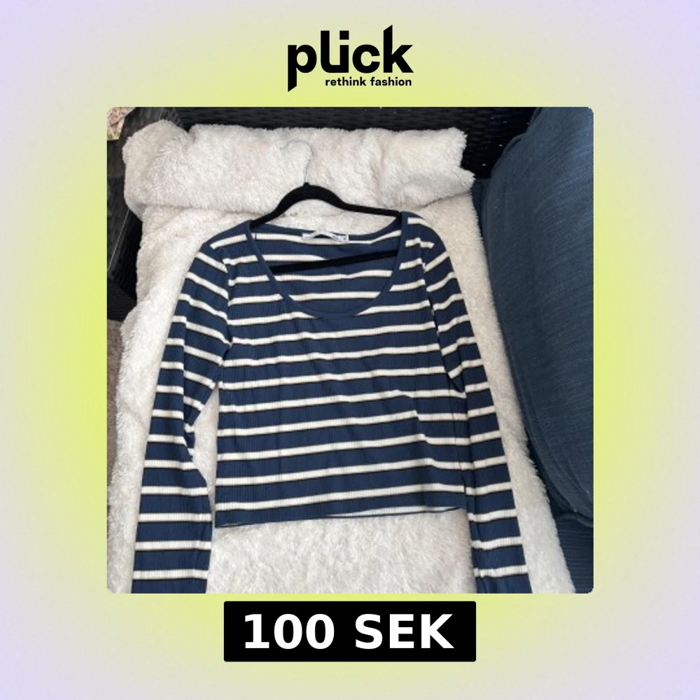 Säljer en snygg randig topp i blått, vitt, beige och svart med ribbad struktur. Toppen har långa ärmar och en rund halsringning. Perfekt för en stilren look!