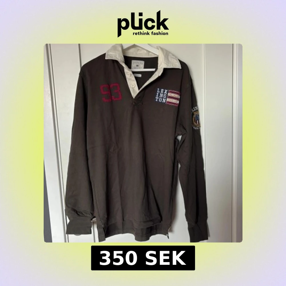 Snygg brun/ grön långärmad pikétröja från Lexington med vit krage, broderad siffra 93 och flaggdetalj på bröstet samt patch på ärmen. Klassisk rugbykänsla och skön bomullskvalitet. Perfekt för dig som gillar preppy stil.
