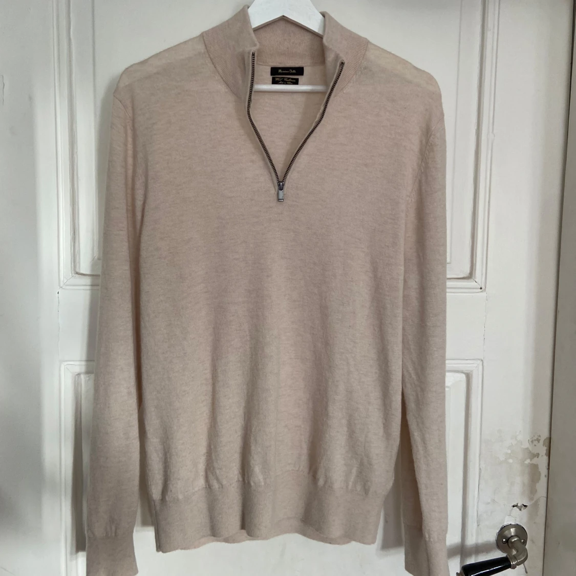 Snygg beige cashmere blend tröja från Massimo Dutti med halv dragkedja och ribbad krage. Väldigt behaglig och mjuk att ha på sig:) Den är knappt använd, därav mycket bra skick🤗