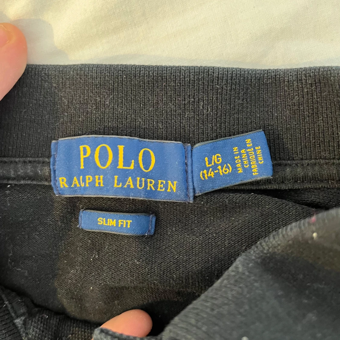 Säljer en stilren svart pikétröja från Ralph Lauren i storlek L Barnstorlek . Tröjan är tillverkad i 100% bomull och har en klassisk krage med knappar. Den har en röd broderad logotyp på bröstet och långa ärmar. Perfekt för en avslappnad men snygg look.