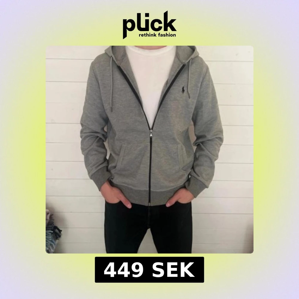 Säljer en jättesnygg Ralph Lauren Zip-Hoodie! Storlek M. Den har en liten fläck men de syns knappt (se på sista bilden) Hör av dig vid frågor😁