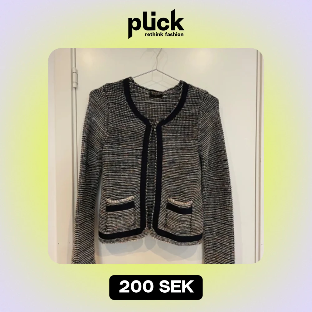 Super snygg stickad kofta. Går att knäppa hela vägen ner. Fina silvertrådar invävda i koftan.