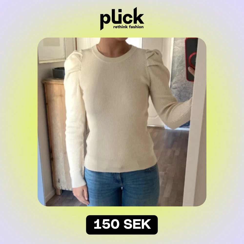 Långärmad ribbad tröja från sellected femme. Med puffärm. Jättesöt!! Jättebra kvalitet. Knappt använd. Köpt för 600kr💞 passar S/M