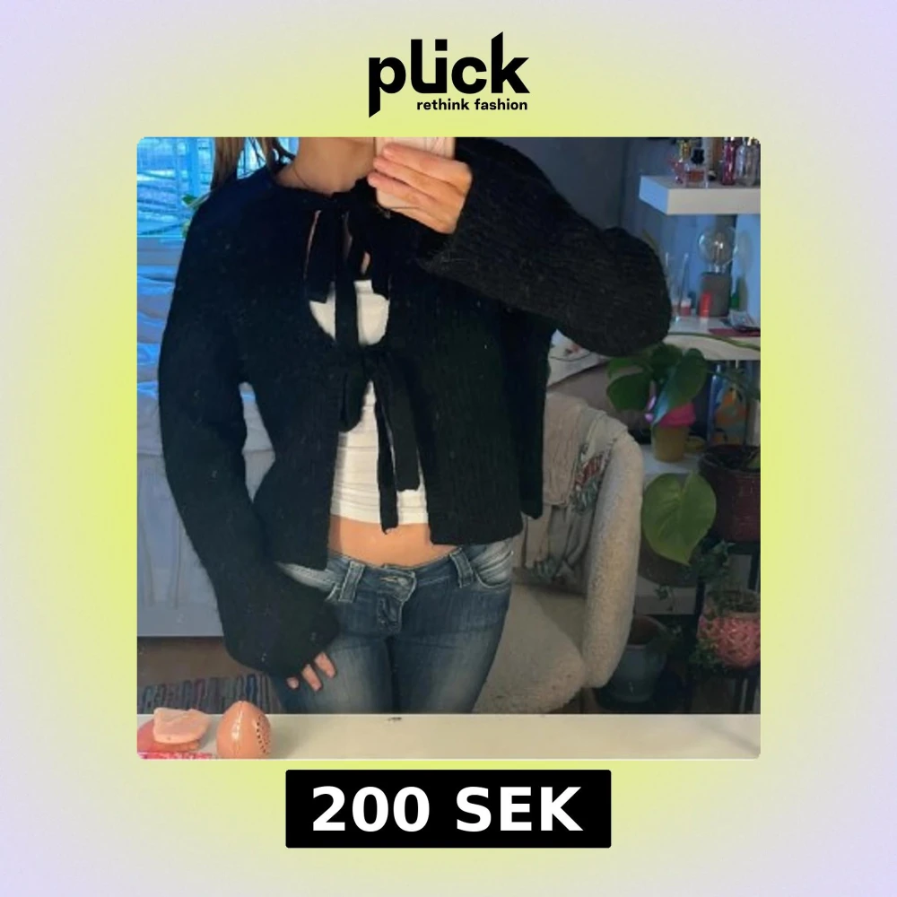 Mysig svart stickad kofta med långa ärmar och två knytband framtill. Koftan är från gina tricot i storlek xs men passar även s. Använd fåtal gånger och säljer då den inte kommer till användning. Pris kan diskuteras🩷