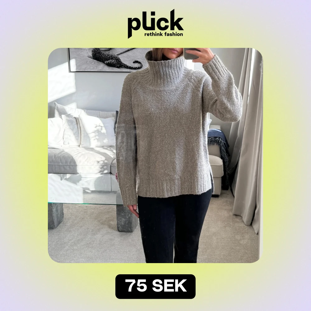 Mysig grå stickad polotröja med hög krage, perfekt för kyliga dagar. Tröjan har en avslappnad passform och långa ärmar, vilket gör den idealisk för både höst och vinter. Den ribbade kanten ger en snygg detalj och extra komfort. Perfekt att mysa i hemma eller för en avslappnad dag ute.