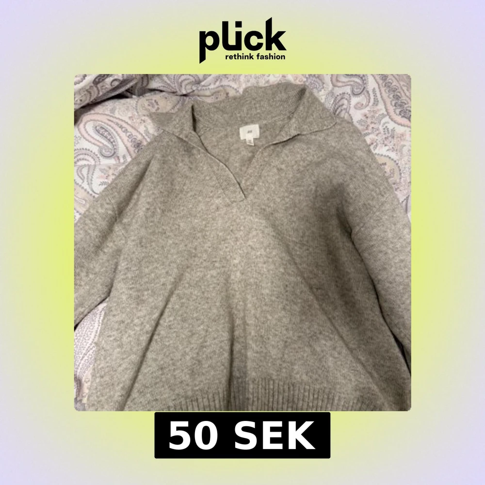 Mysig grå stickad tröja från H&M med en avslappnad passform. Tröjan har en v-ringad krage och långa ärmar, perfekt för kyligare dagar. Den ribbade nederkanten ger en extra touch av stil. Perfekt för att hålla sig varm och bekväm.