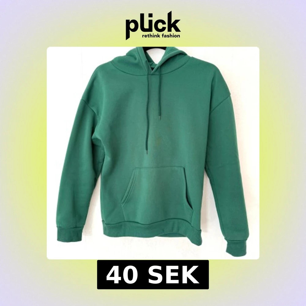 Enkel grön hoodie i storlek S med huva och dragsnören. Tröjan har en stor magficka framtill och ribbade muddar vid ärmslut och nederkant. Perfekt för chill dagar eller när du vill ha en avslappnad stil.