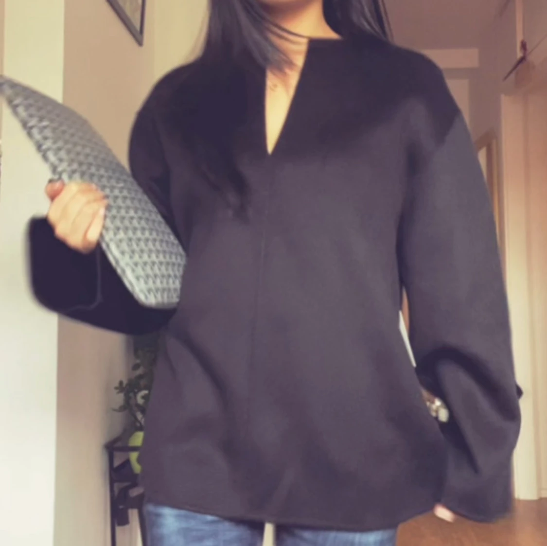 Super fin och mysig softgoat tröja perfekt för hösten, kan användas som topp men skulle även vara fin över stickade plagg! Storlek M, bilderna är mina och brukar ha s/xs! Prislapp kvar endast testad