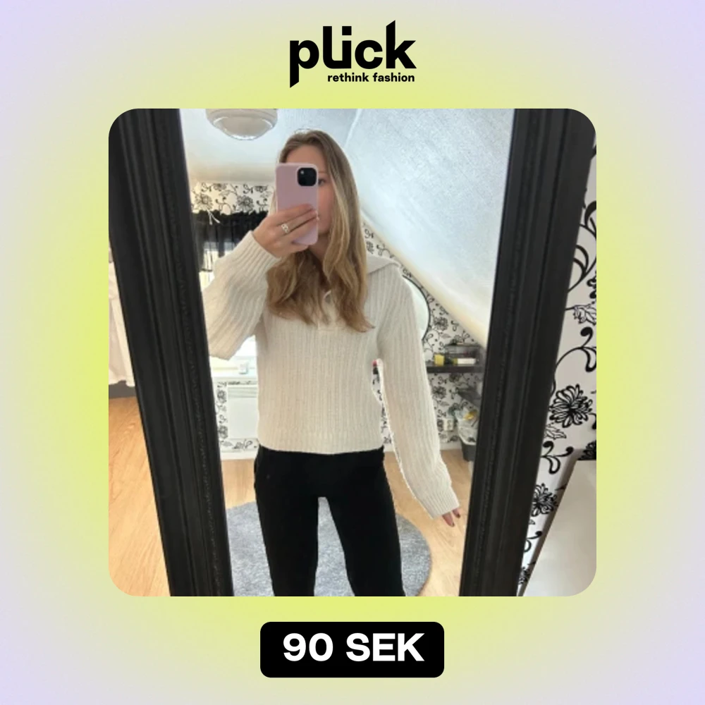 En jättefin stickad tröja i gräddvit färg som är otroligt varm och bekväm. Använd ett fåtal gånger och köpte den på Plick för ca 2 månader sedan🙏🏽