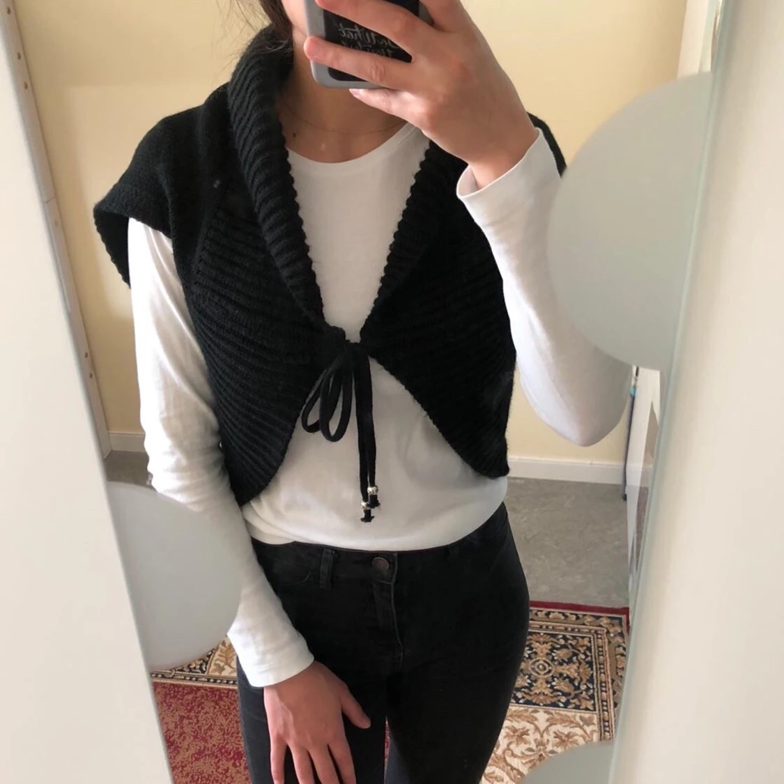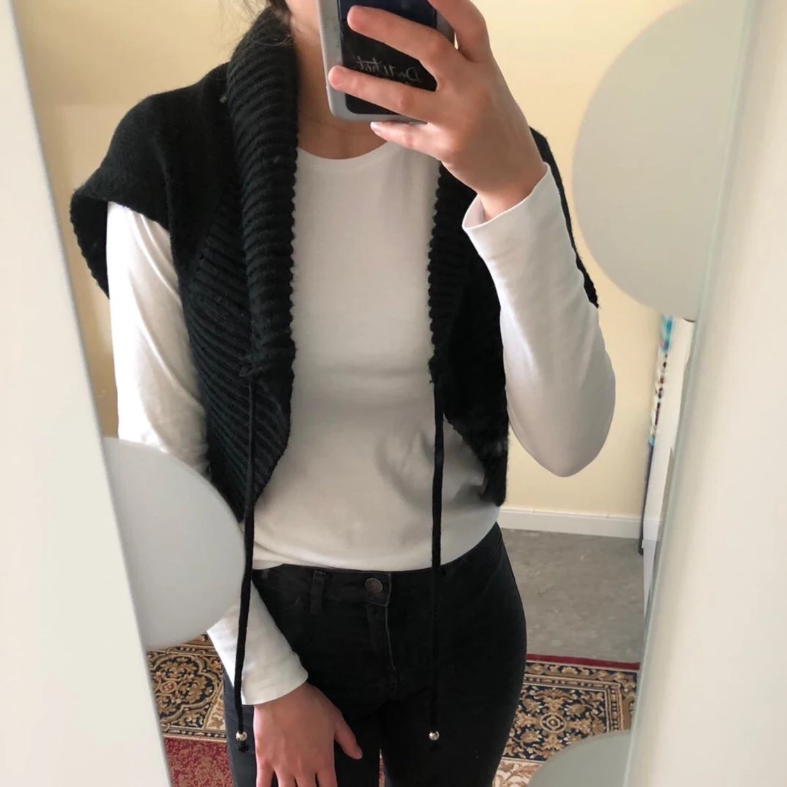 Svart stickad väst/bolero med knyt på framsidan. Helt ny och oanvänd. Skriv om du undrar något 🤍