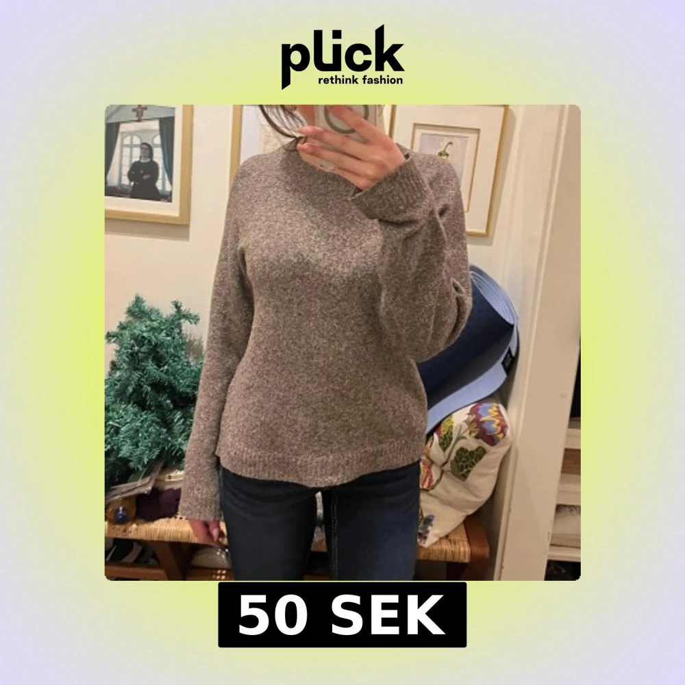 Mysig brun stickad tröja med långa ärmar. Perfekt för kyligare dagar och ger en avslappnad look. Passar bra till jeans eller kjol.