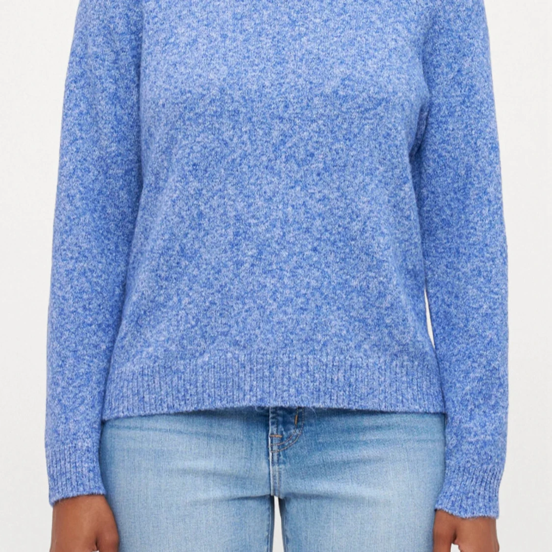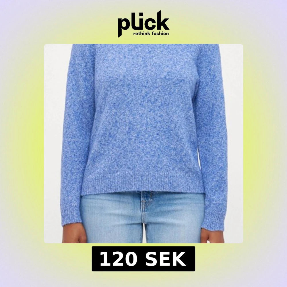 Mysig blå stickad tröja med rundad hals och långa ärmar. Perfekt för att hålla värmen under kyliga dagar.