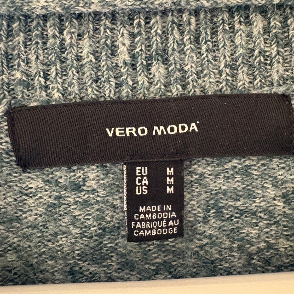Mysig blå stickad tröja från Vero Moda i storlek M. Tröjan har en klassisk rund hals och långa ärmar och otroligt mysigt material