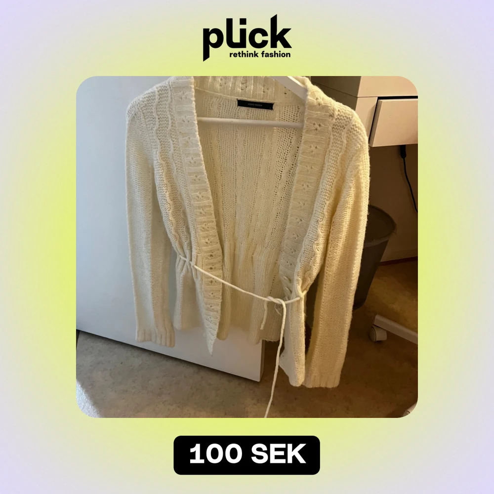 Mysig vit stickad kofta från Vero Moda i storlek L., dock är den liten i storlek!!!!!!!Den har långa ärmar och ett knytband i midjan för en fin passform. Perfekt för kyliga höst- och vinterdagar. Koftan har en klassisk design med ribbade detaljer och knappar framtill. Ett måste i garderoben för en stilren look! 🤍