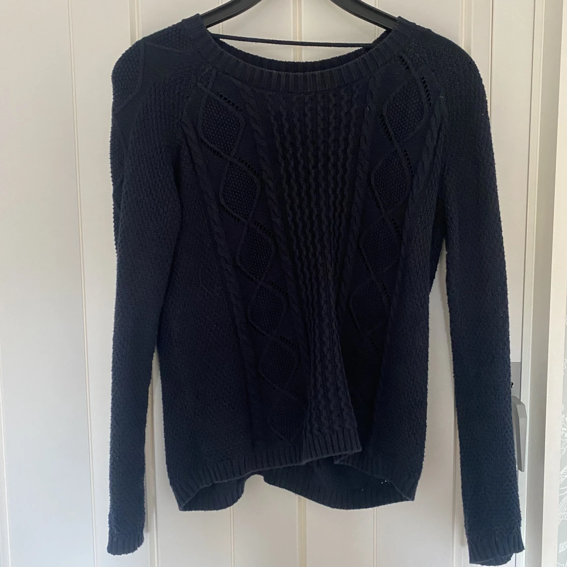 Blå stickad tröja med lite mönster, säljs då den inte kommer till användning. Hör av er vid frågor🥰