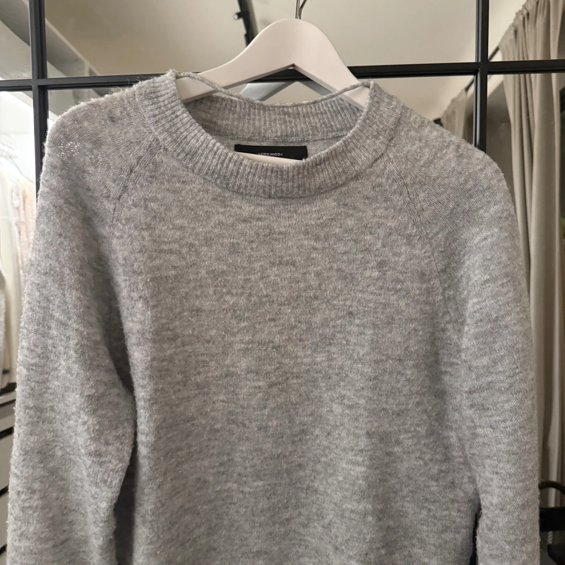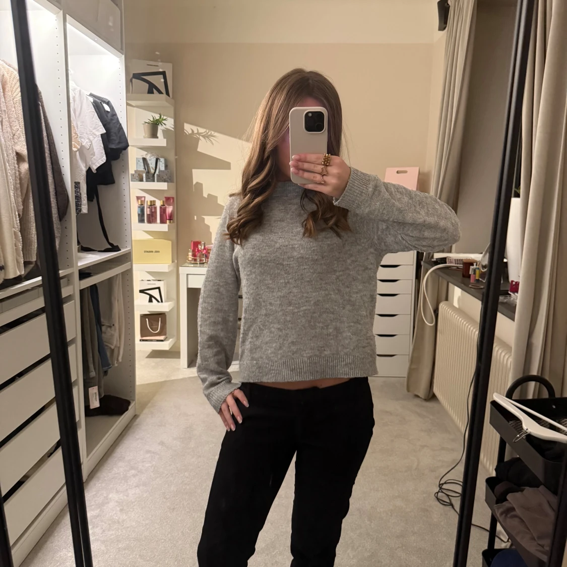 Mysig grå stickad tröja från Vero Moda i storlek S. Tröjan har rund halsringning, ribbade muddar och lång ärm. Perfekt för lager-på-lager och enkel att matcha med jeans eller kjol. Klassisk och stilren modell som funkar året runt.