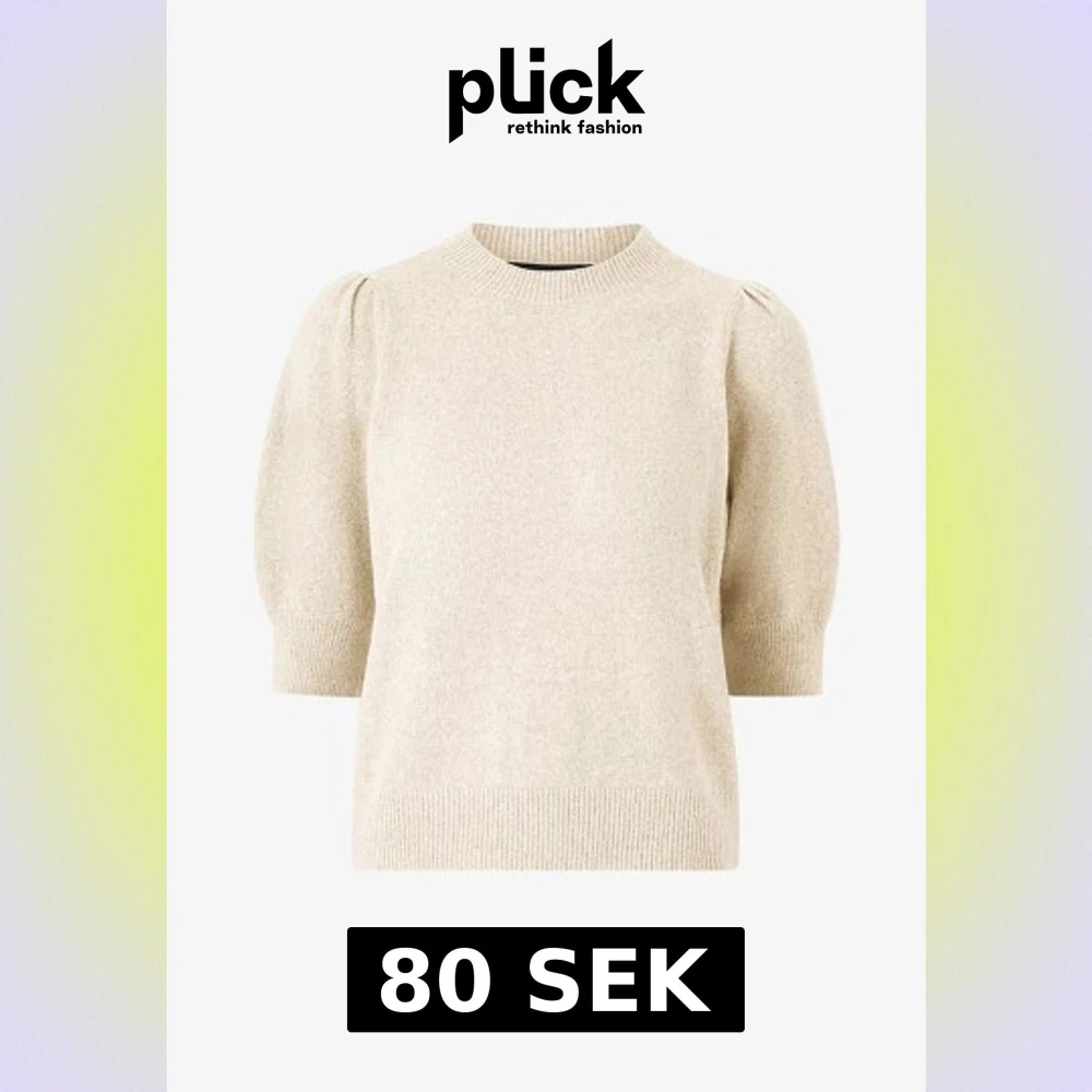 Snygg beige stickad tröja med puffiga korta ärmar och rund hals. Tröjan har ribbade muddar vid hals, ärmslut och nederkant.💖