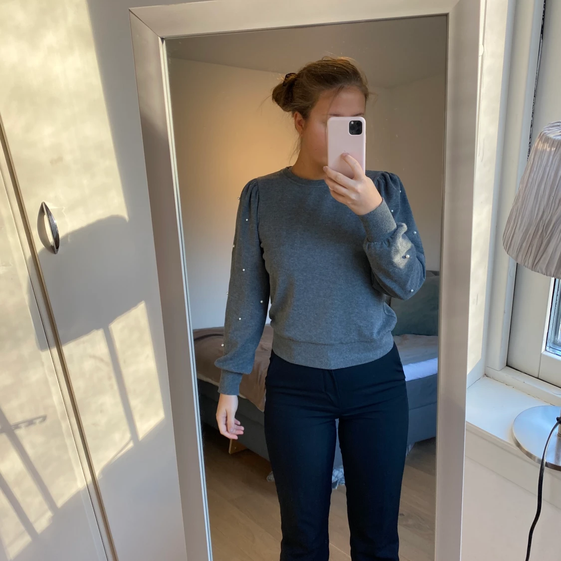 Nu säljer jag denna jätte fina och bekväma tröja med pärlor på armarna! Den sitter väldigt skönt om har en bra passform. Den har sällan andvänds!
