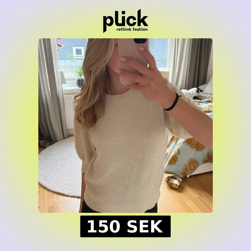 Säljer en mysig vit stickad tröja från Vero Moda. Tröjan har trekvartsärmar med puffiga axlar och ribbade kanter vid ärmslut och nederkant. Perfekt för en stilren och bekväm look.Änvänt ett par gånger men super fint skick lite nopprig bara. Skriv för frågor eller bilder