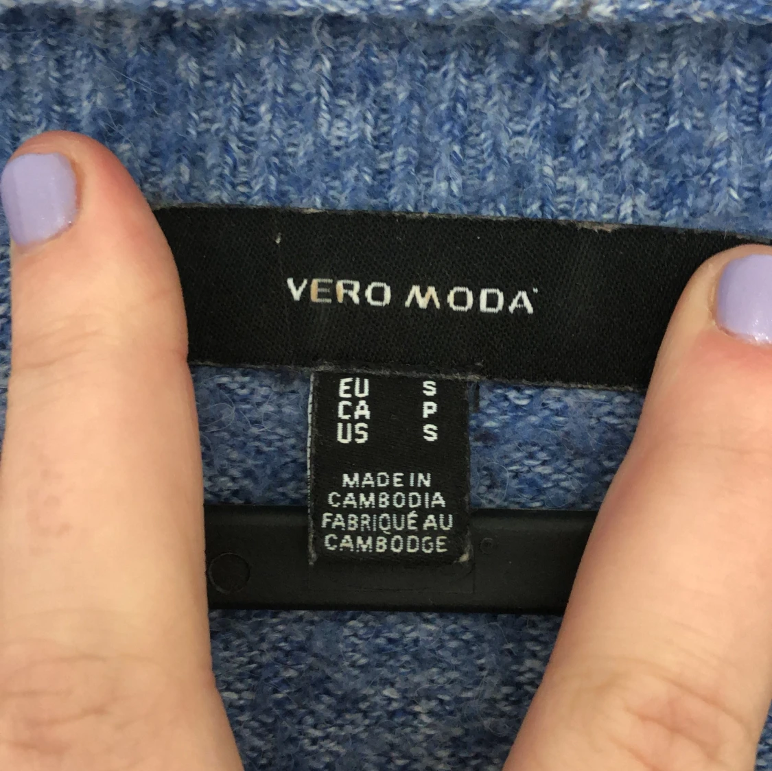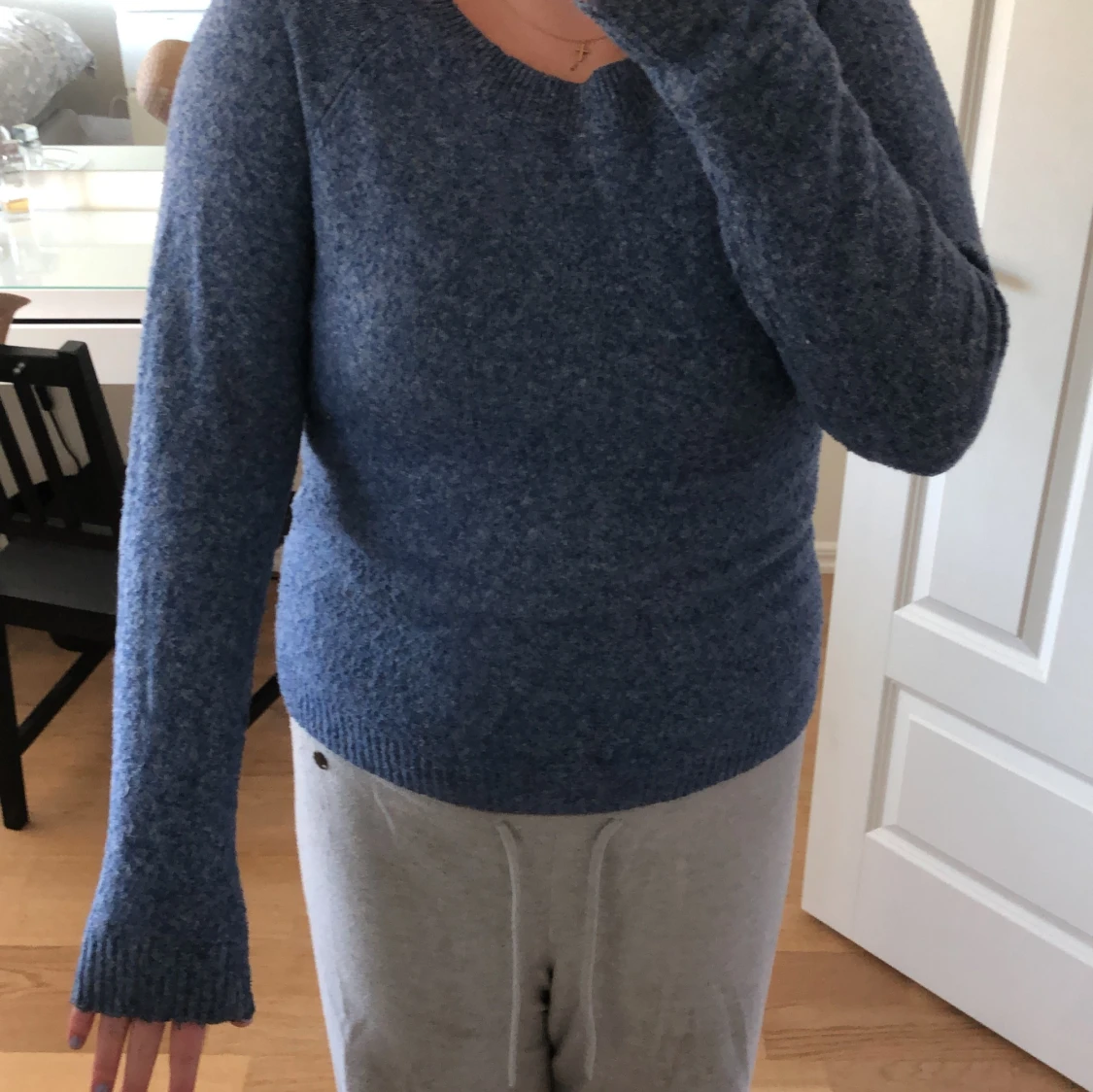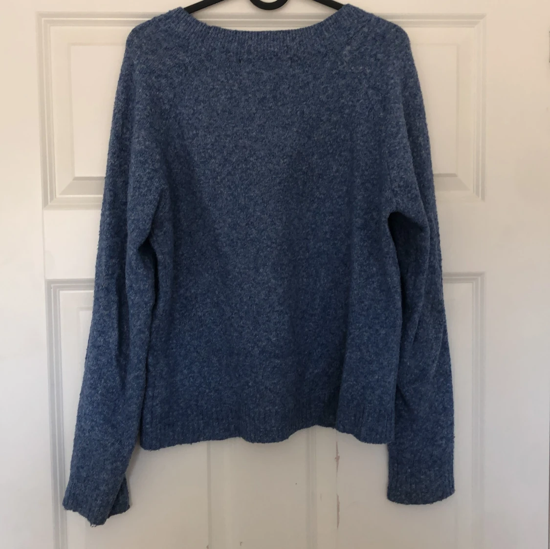 Mysig blå stickad tröja från Vero Moda. Perfekt för kyliga dagar med sin mjuka och bekväma passform. Tröjan har långa ärmar och en klassisk rund halsringning. Tröjan passar en S men även mig som är M men då sitter den lite tajtare.🥰