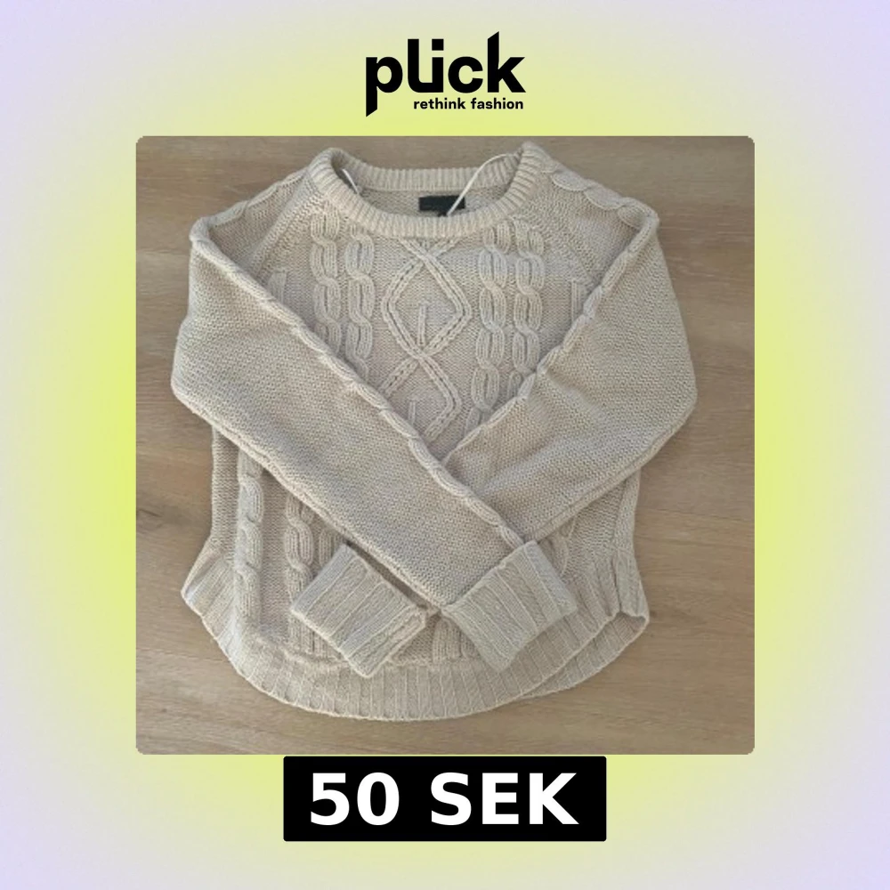 Beige stickad tröja från Vero Moda i storlek XS💕Tröjan har ett snyggt flätmönster framtill och längs ärmarna, rund halsringning och ribbade muddar!🥰