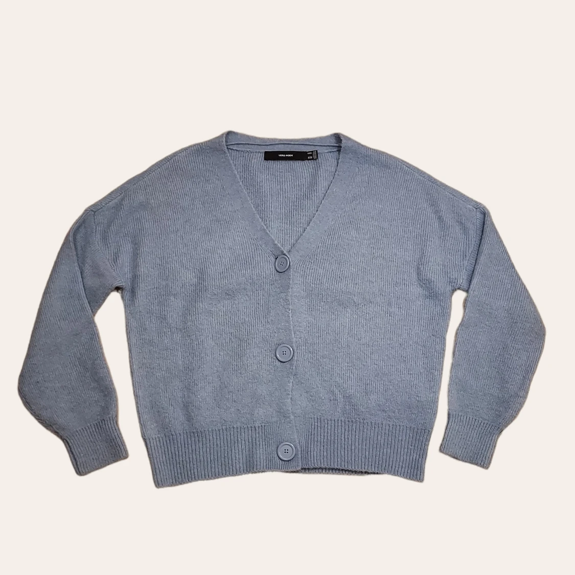 jätteskön ljusblå kofta från vero moda - storlek m endast använd fåtal gånger så fortfarande i bra skick !! (färgen är ljusblå, men ser grå ut på bild)
