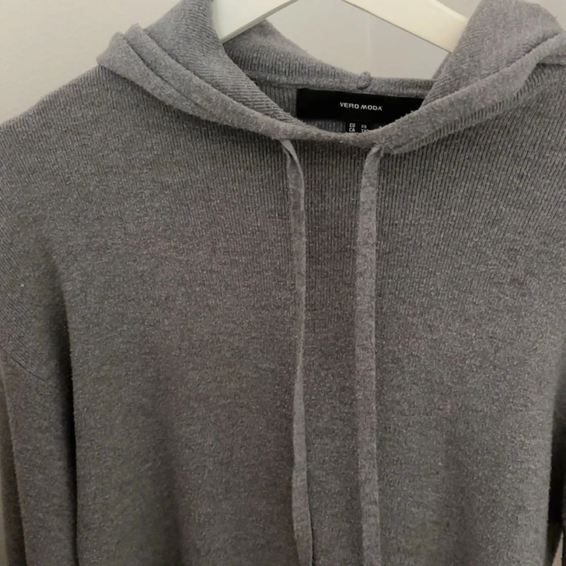 Grå stickad hoodie från Vero Moda i storlek xs . Tröjan har huva med snörning och långa armar. Skriv för frågor !