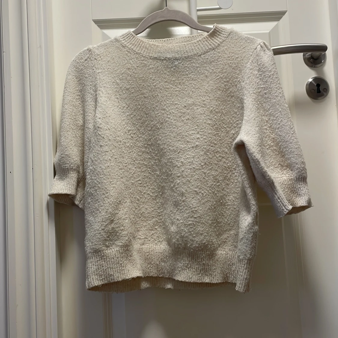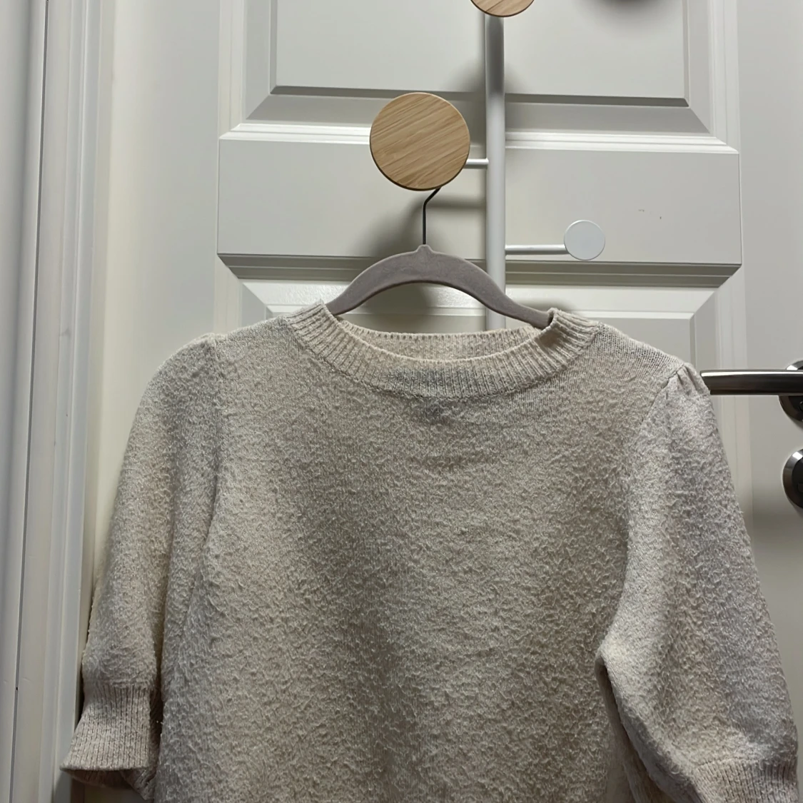 Superfin beige stickad tröja från Vero Moda i storlek XS. Tröjan har kortare ärmar med ribbade muddar och en rund halsringning. Mjuk och skön struktur!❤️Nypris: 230 Mitt pris:70