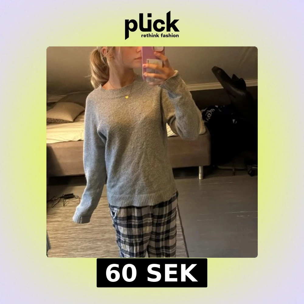 Mysig grå stickad tröja med rund halsringning och ribbade muddar vid ärmslut och nederkant. Perfekt för kyliga dagar och enkel att matcha med olika outfits. Klassisk och stilren modell som passar till det mesta.