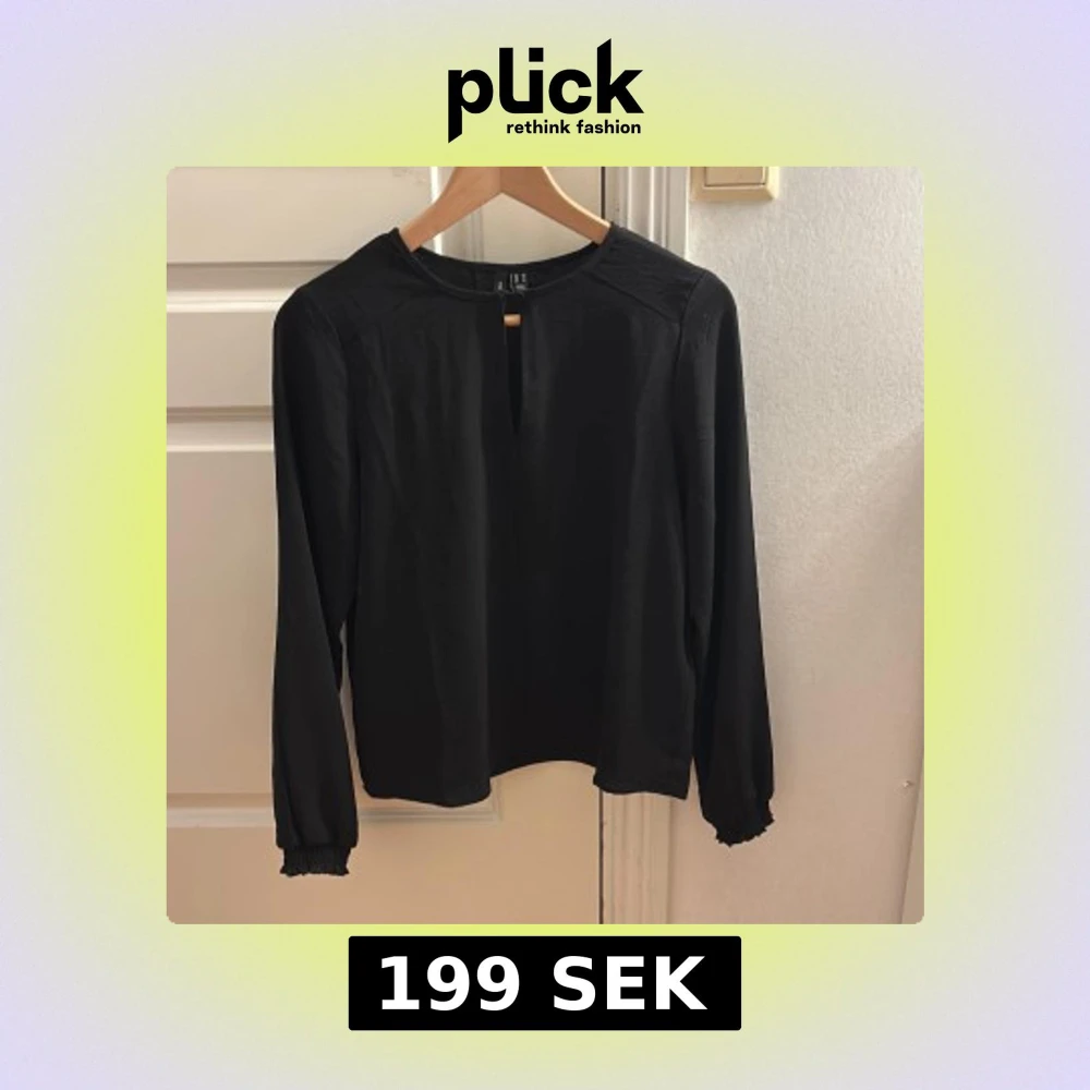 Stilren svart blus från Vero Moda i storlek XS. Blusen har långärmade ärmar med resår vid handlederna och en liten öppning framtill vid halsen. Perfekt till både jeans och kjol för en clean look.