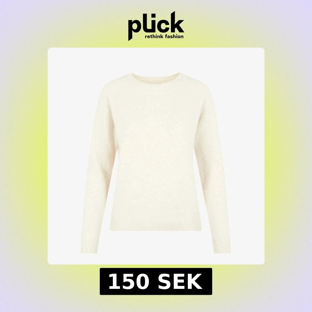 Säljer en stilren vit stickad tröja med rund hals och långa ärmar. Perfekt för kyligare dagar och enkel att matcha med olika outfits. Tröjan har ribbade muddar vid ärmslut och nederkant för en klassisk look.