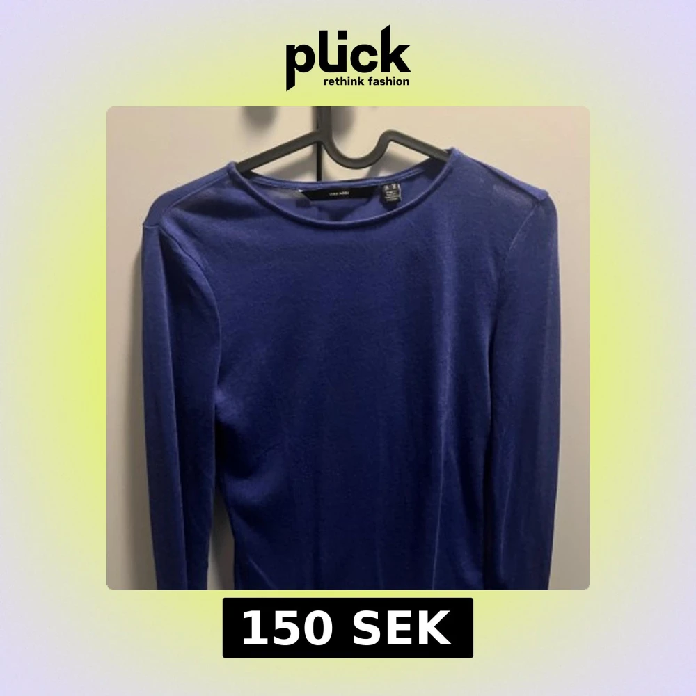 En stilren blå långärmad tröja från Vero Moda. Tröjan har en klassisk rund halsringning och är tillverkad i ett mjukt, tunt material som känns skönt mot huden. Perfekt att styla med jeans eller kjol för en enkel och snygg look.