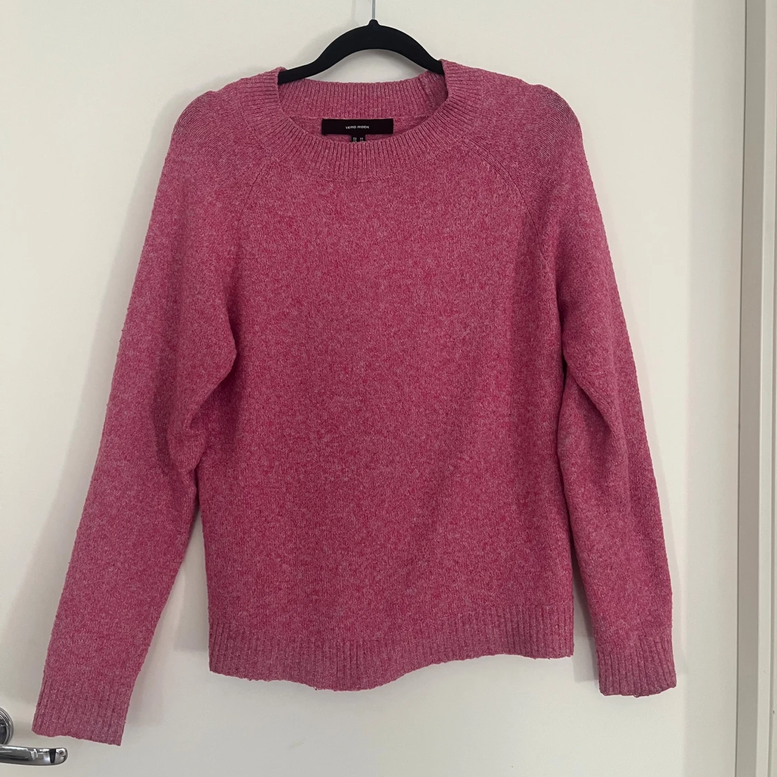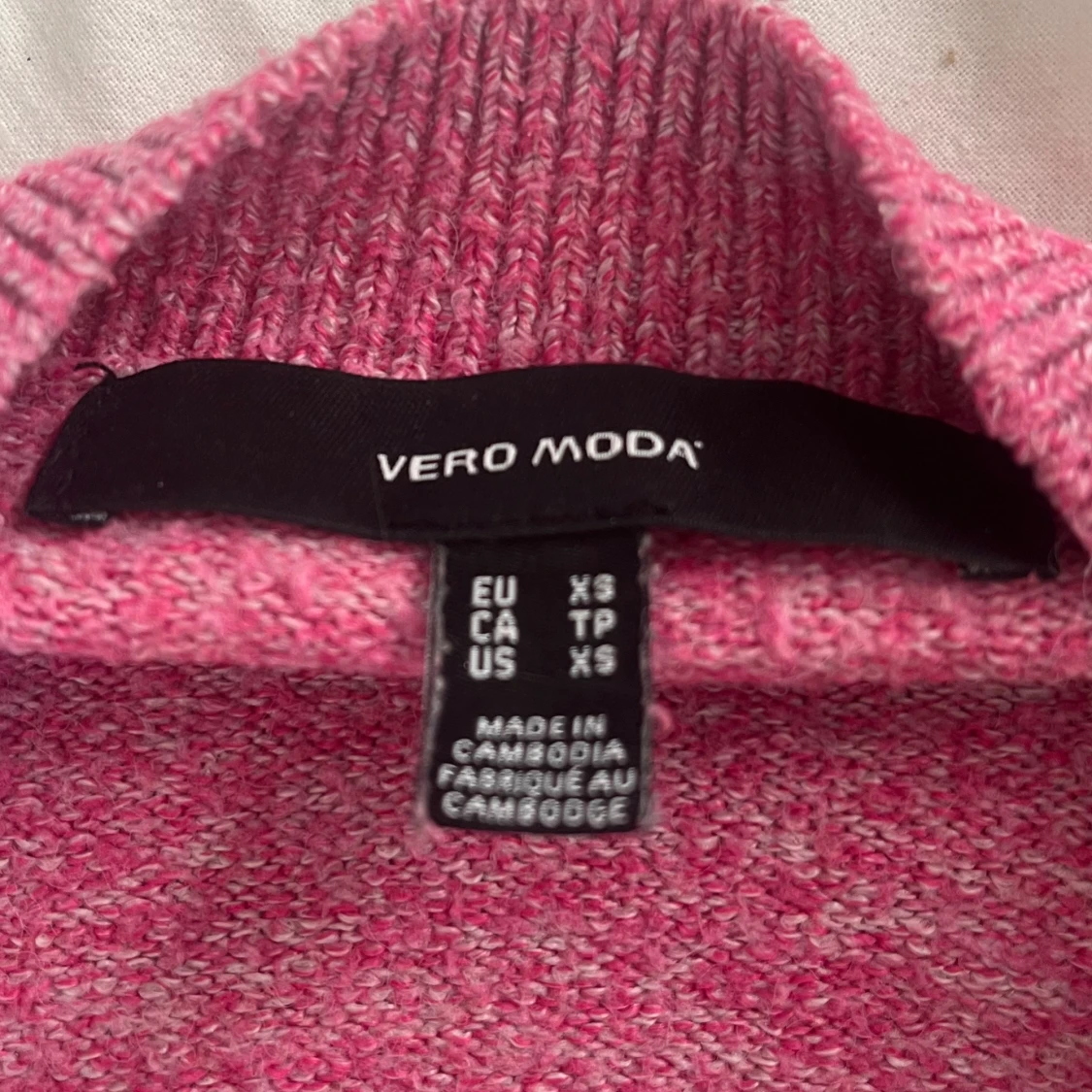 Mysig rosa stickad tröja från Vero Moda i storlek XS. Tröjan har rund halsringning, ribbade muddar och lång ärm. Perfekt för kyliga dagar och enkel att matcha med jeans eller kjol.