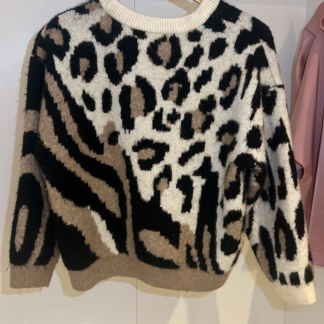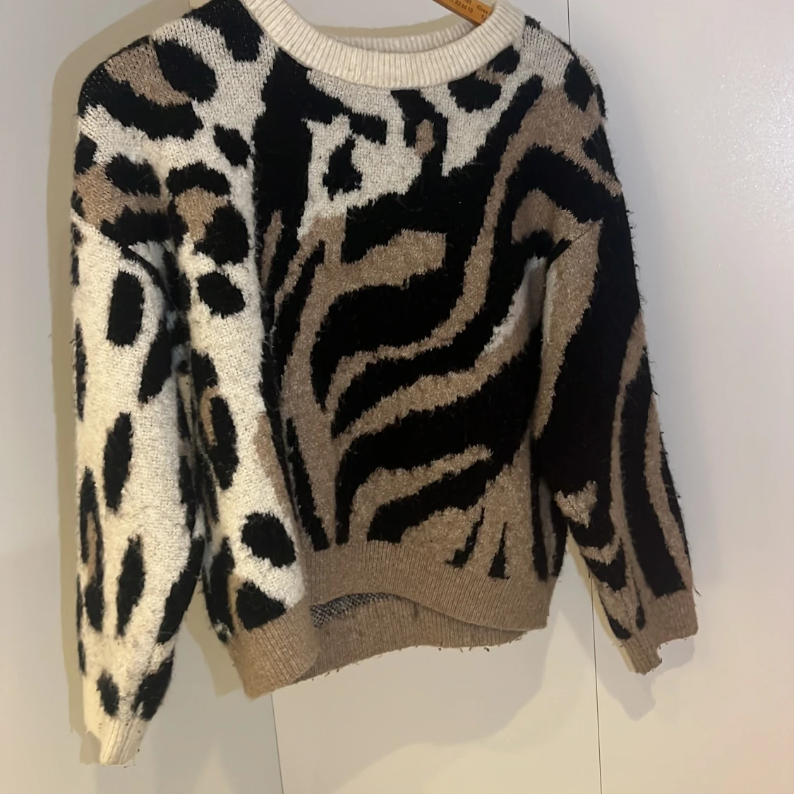 Säljer en unik tröja med mönster i beige, svart och vit. Tröjan har en normal passform och är långärmad, perfekt för att sticka ut i mängden. Den är tillverkad i ett mjukt material som känns skönt mot huden. kolla gärna in min profil för fler plagg 💓💓