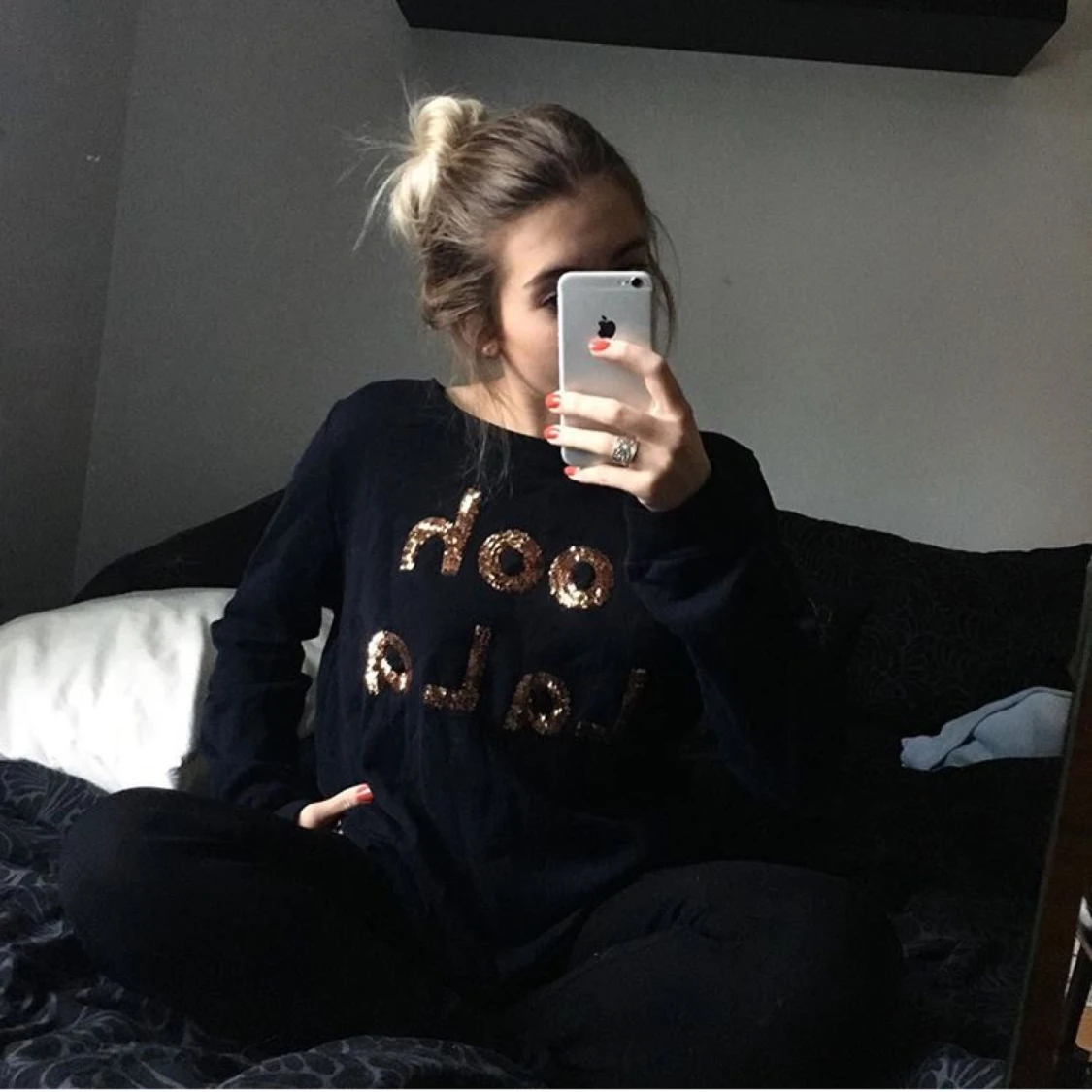 Jätteskön tröja med paljett text fram, aldrig använd
