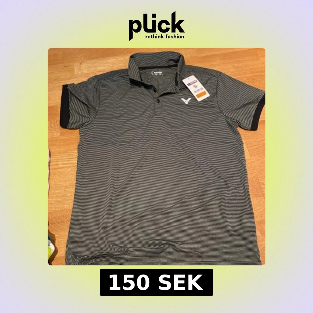 Snygg svart och grå randig pikétröja från Victor med klassisk krage och knappar framtill. Tröjan har korta ärmar och diskret logga på bröstet. Perfekt för dig som gillar sportig och stilren look