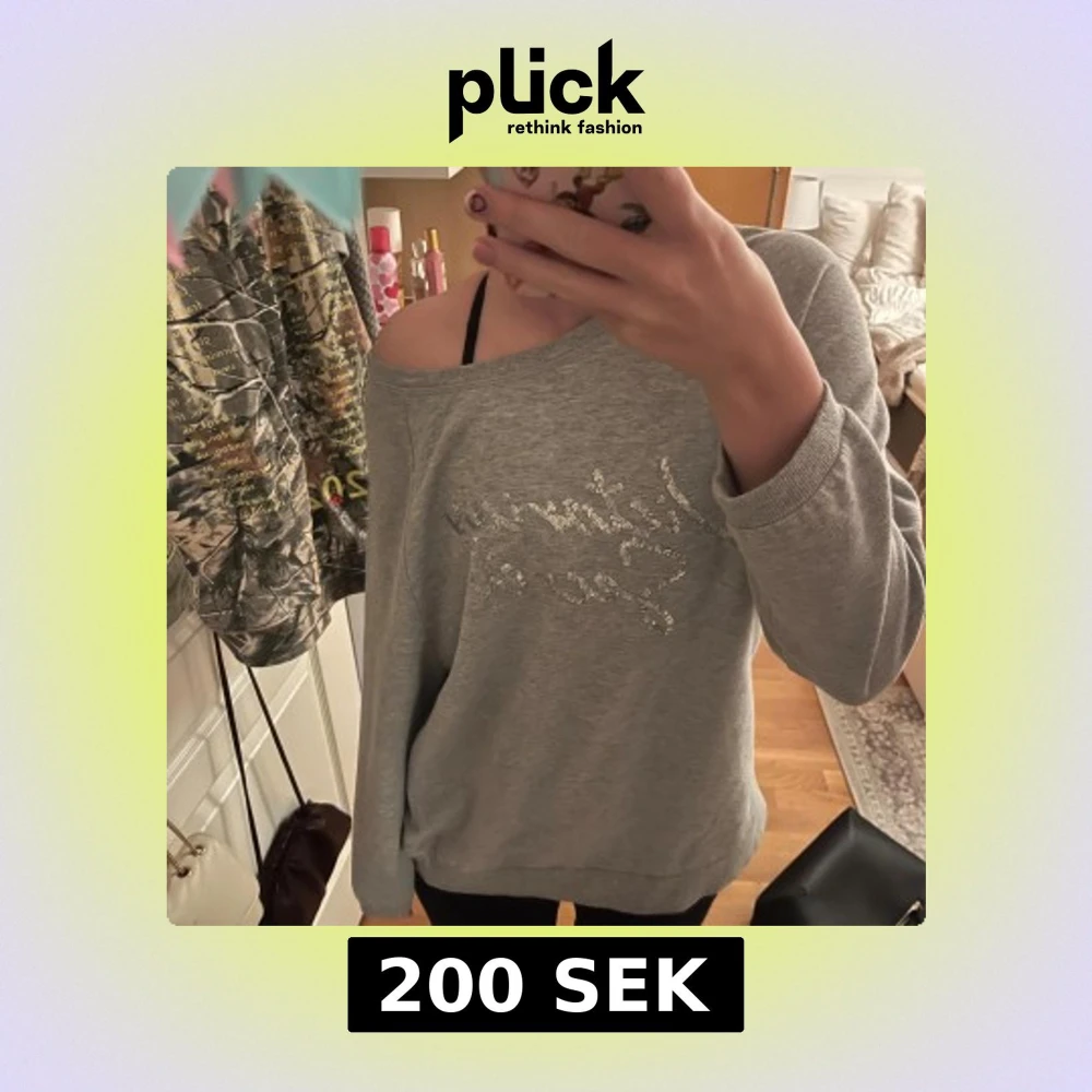 Supermjuk grå sweatshirt från Victoria's Secret med glittrigt silvrigt tryck framtill. Tröjan har en avslappnad passform, bred halsringning och långa ärmar. Perfekt för chill dagar eller när du vill vara extra comfy.